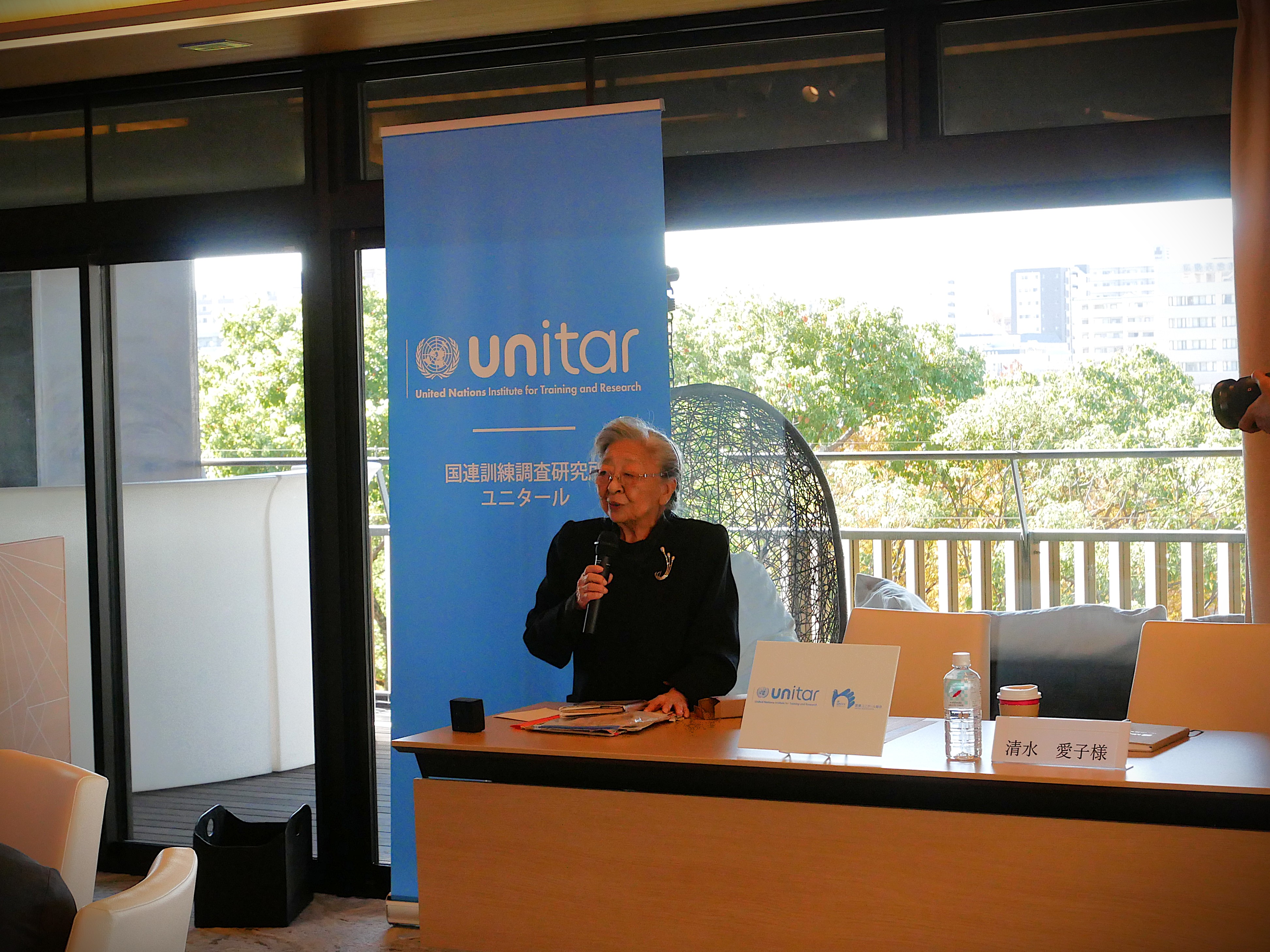 In the first half of the event, participants presented the digital stories they had created during the training, followed by remarks from Mr. Shigeki Sasaki, Chair of the Board of Directors of the UNITAR Association.