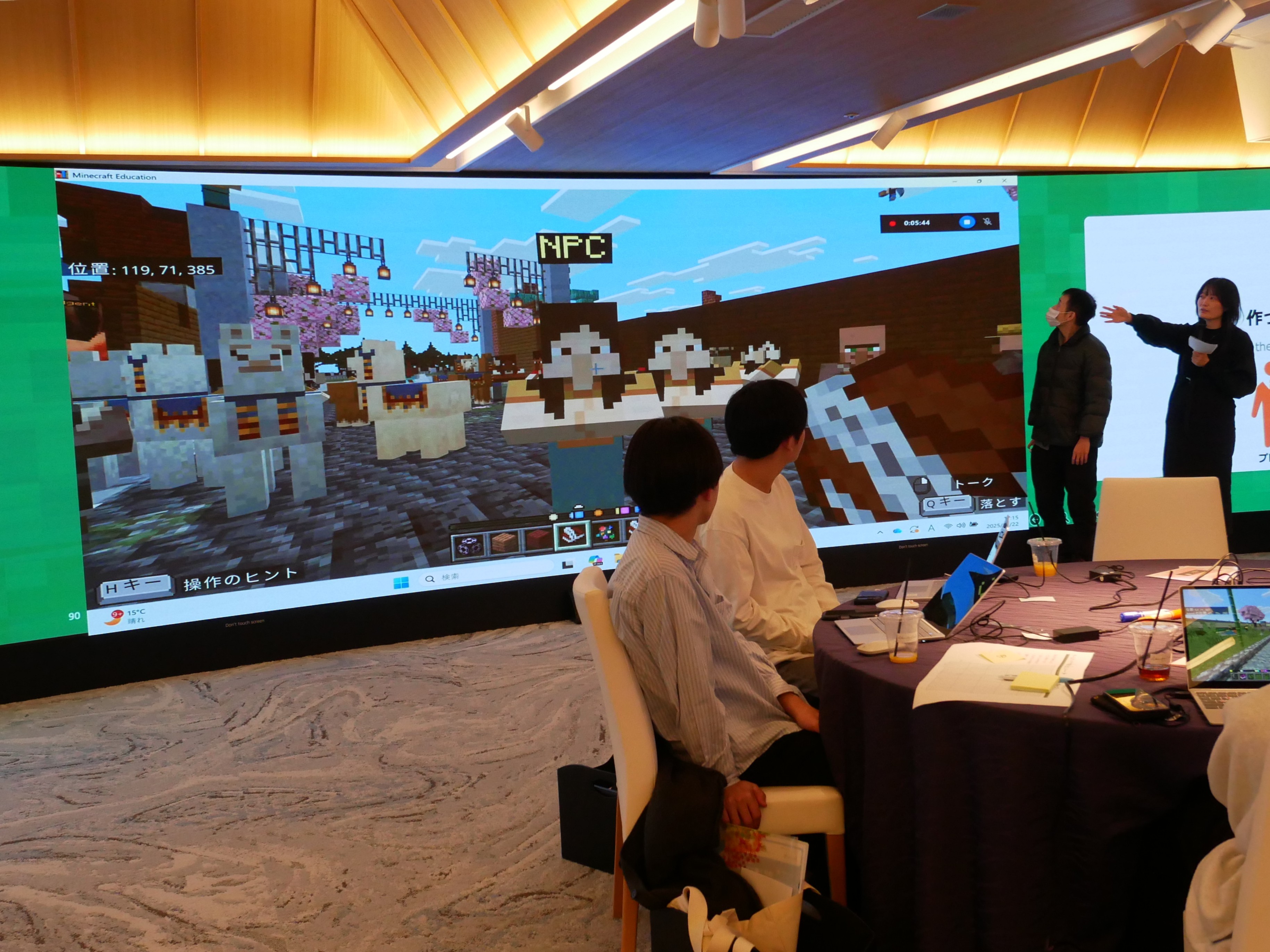 In the second half of the event, participants joined an interactive workshop facilitated by Mr. Takashi Doi, Representative Director of the Digital Monozukuri Council. Using Minecraft Education Edition, participants worked in groups to recreate the cityscape of Hiroshima before the atomic bombing. High school participants shared that this hands-on workshop was very different from the peace education they had received in primary, junior high, and high school, and that it offered a valuable opportunity to gain new perspectives and a renewed understanding of Hiroshima.