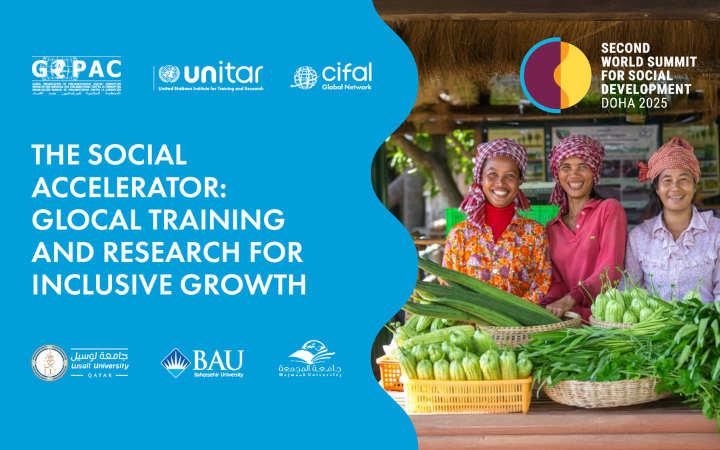 In collaboration with the Global Organization of Parliamentarians Against Corruption (GOPAC), Lusail University, Bahçeşehir University, and Majmaah University, UNITAR will host the Solutions Session themed “The Social Accelerator – Glocal Training and Research for Inclusive Growth”. This interactive side event will highlight actionable and scalable solutions that advance social development through “glocal” approaches, connecting global expertise with locally grounded initiatives to achieve sustainable social development. Drawing on the experience of UNITAR and its worldwide CIFAL Global Network, the discussion will showcase examples of multi-stakeholder collaboration that promote integrity and anti-corruption training, ethical governance, digital transformation, inclusive leadership, youth empowerment, and innovation.