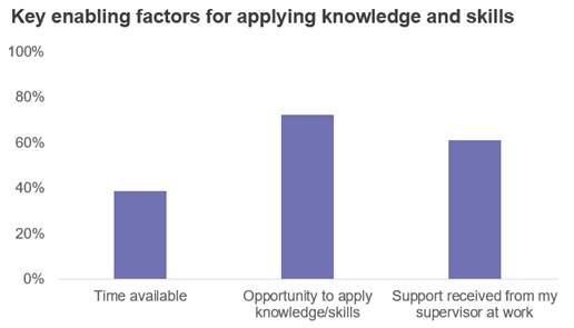 This is further reflected in the near even split among respondents who reported having observed tangible improvements in performance or results following the application of newly acquired knowledge and skills.