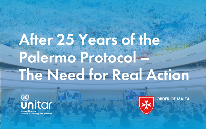 The United Nations Institute for Training and Research (UNITAR) and the Sovereign Order of Malta are pleased to announce a high-level event commemorating the 25th anniversary of the Palermo Protocol. Scheduled for 12:00pm on the 28th March 2025 at the Palais des Nations, Geneva, the Human Rights Council side event titled After 25 Years of the Palermo Protocol – The Need for Real Action will focus on strengthening global efforts to combat human trafficking through capacity-building and training.