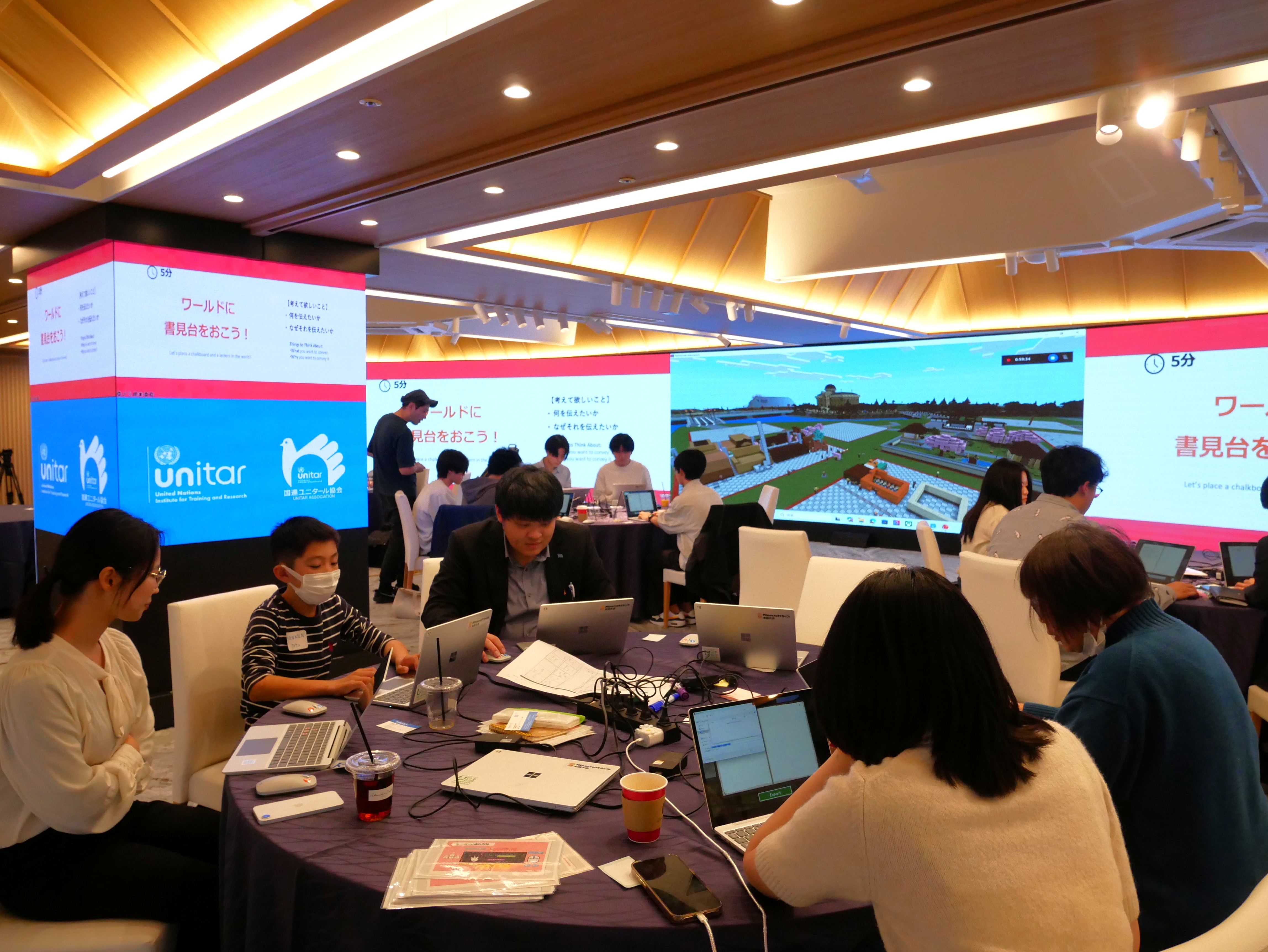 UNITAR, with the support of UNITAR Association and Microsoft Japan Co., Ltd., organized the public workshop “Building Peace with Blocks: Minecraft and Hiroshima” on 22 November in Hiroshima. The event showcased three digital storytelling projects that were developed by 12 youth participants who completed the UNITAR “SDGs and the Digital Futures” training programme. Young people in Hiroshima joined the event and explored Hiroshima’s peace and reconstruction with Minecraft Education Edition.
