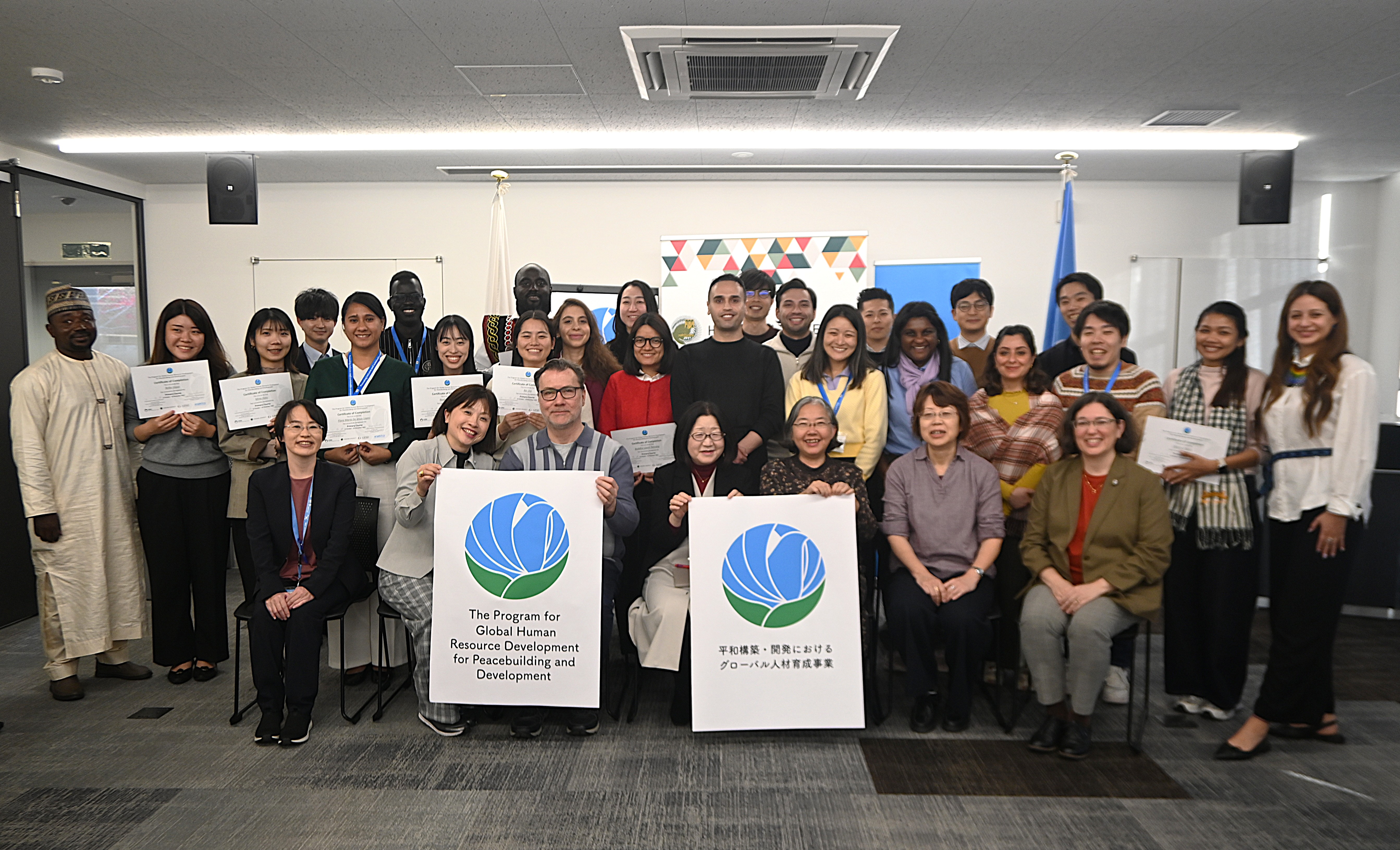 On 30 November, 24 Program Associates from 13 countries, region and organization completed the Primary Course of the Program for Global Human Resource Development for Peacebuilding and Development. The course began with online preparatory sessions and asynchronous, self-paced learning on 12 October, followed by four weeks of intensive in-person training sessions held in Tokyo and Hiroshima from 3 to 30 November. Throughout the course, Program Associates strengthened their substantive knowledge, enhanced the competencies and values required for international careers, and deepened their strategic thinking regarding their future professional paths. The training featured sessions led by global experts from diverse fields, offering Program Associates valuable insights into peacebuilding and development practice. The Program is commissioned by the Ministry of Foreign Affairs of Japan and implemented by Hiroshima University in collaboration with UNITAR and the United Nations Volunteers (UNV) programme.
