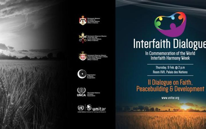 9 February 2017, Geneva. Switzerland - UNITAR hosted the second edition of the Dialogue on Faith, Peacebuilding & Development, to discuss how to leverage faith as an instrument of international harmony. The event was a unique dialogue that comprised two panels with six ambassadors and several scholars and faith leaders. Held at the Emirates Room of the Palais des Nations, it was attended by United Nations staff and diplomats, as well as by media, observers, students and activists from civil society organizations.